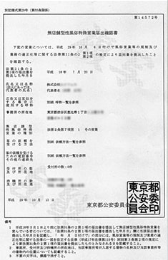 無店舗型性風俗営業 東京都公安委員会 第16858号
